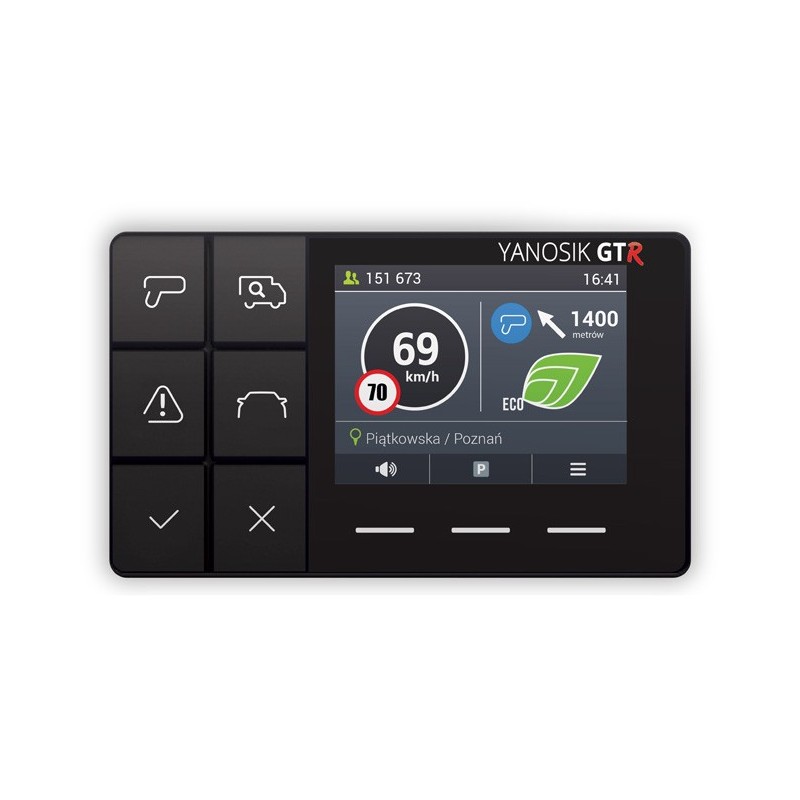 Yanbox GTR informuje m.in. o fotoradarach, odcinkowych pomiarach prędkości, kontrolach drogowych, wypadkach oraz innych utrudnieniach na trasie.