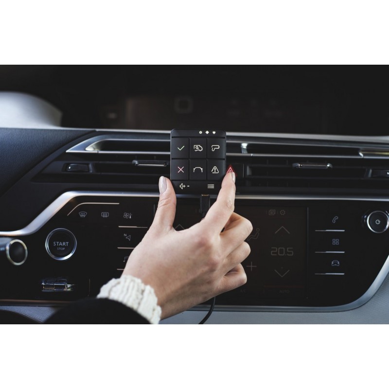 Yanbox XS to kompaktowy kontroler do aplikacji Yanosik, który ułatwia obsługę ostrzeżeń drogowych bez sięgania po telefon.