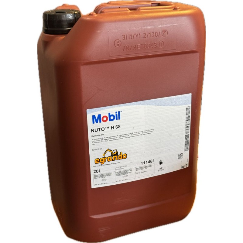 Mobil Nuto H 68 to olej hydrauliczny klasy HM (ISO VG 68) przeznaczony do układów hydraulicznych maszyn przemysłowych. Zapewnia ochronę przeciwzużyciową, stabilną pracę pomp i wysoką odporność na utlenianie. Oryginalny kanister 20L.