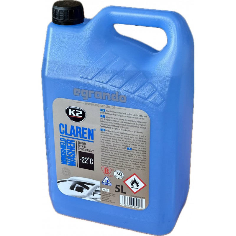 K2 CLAREN – zimowy płyn do spryskiwaczy skuteczny do –22°C. Gotowy do użycia, perfumowany i bezpieczny dla lakieru, gum i wycieraczek. Skutecznie usuwa sól, błoto i osady z szyb, nie pozostawiając smug ani zacieków. Chroni układ spryskiwaczy przed zamarzaniem i zapewnia krystaliczną przejrzystość w każdych warunkach. Oryginalny produkt K2 w ekonomicznym opakowaniu 5 L – idealny wybór na sezon zimowy.