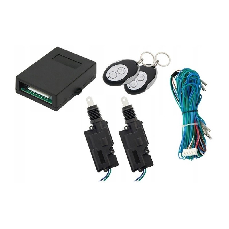Najprostszy w montażu i użytkowaniu kompletny zestaw centralnego zamka z siłownikami do 2 drzwi. W zestawie są także dwa piloty brelok. Najczęściej wybierany komplet.